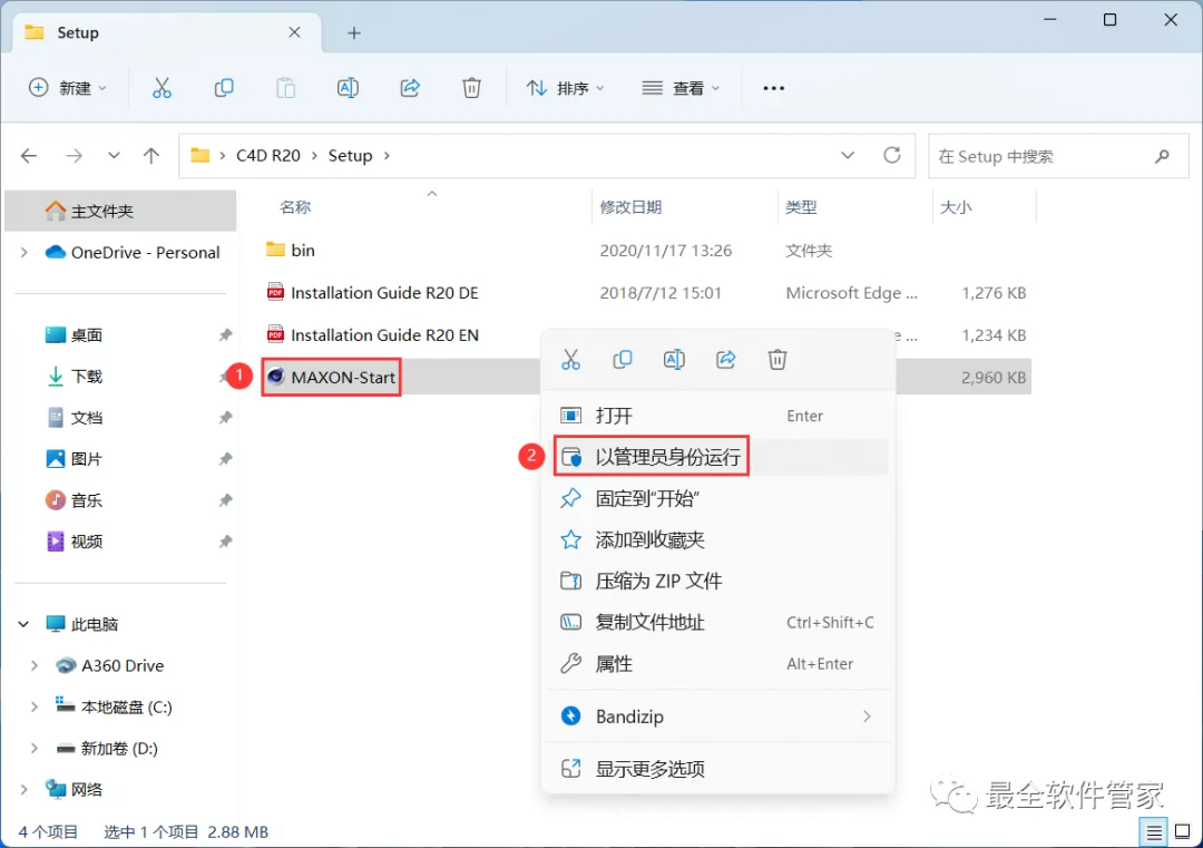 4、找到【MAXON-Start】应用程序,右键选择【以管理员身份运行】它