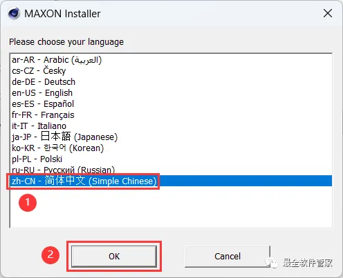 5、选择【zh-CN-简体中文】,再点击【OK】