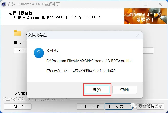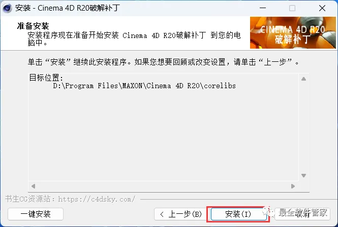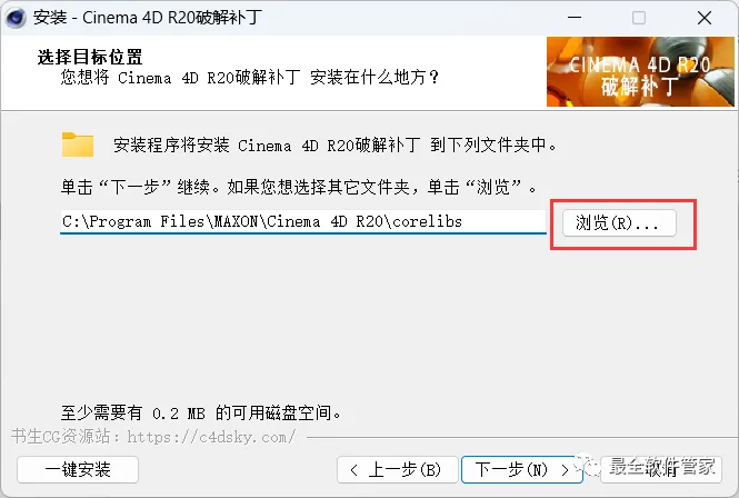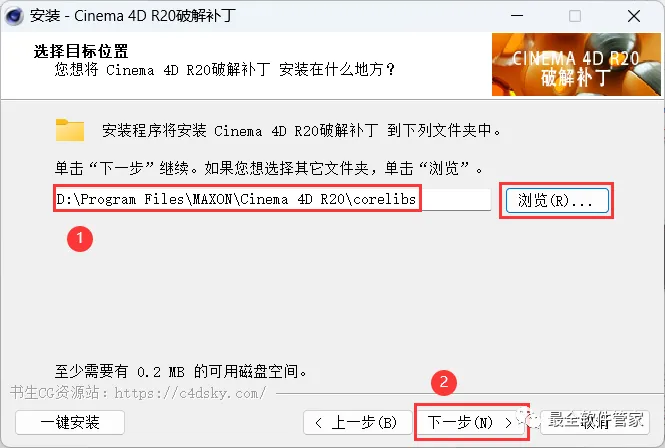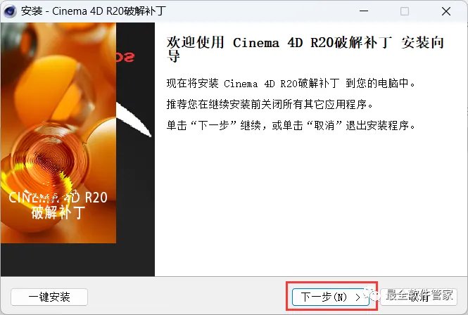 17、补丁安装路径需要与C4D安装路径一致,步骤11可查看,再点击【下一步】