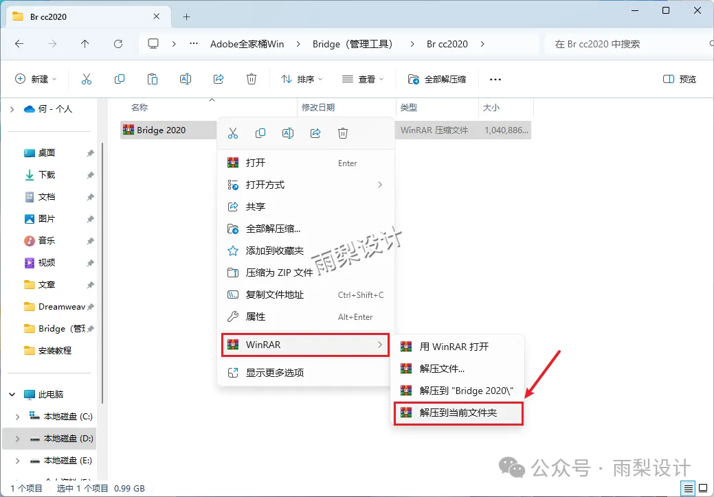 1.右键【下载的安装包】选择【解压当前文件夹】