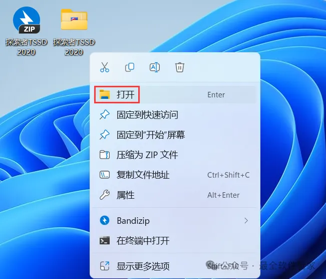 14、回到桌面,右键桌面上的【探索者TSSD 2020软件图标】,点击【打开】