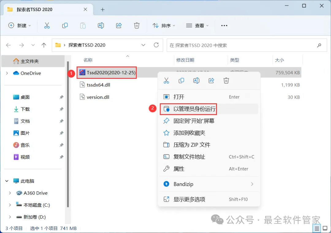 3、找到【Tssd2020…】应用程序,右键选择【以管理员身份运行】它