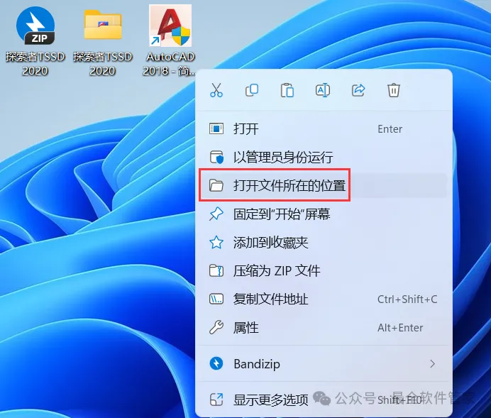 12、回到桌面,右键桌面上的【AutoCAD 2018软件图标】,点击【打开文件所在的位置】