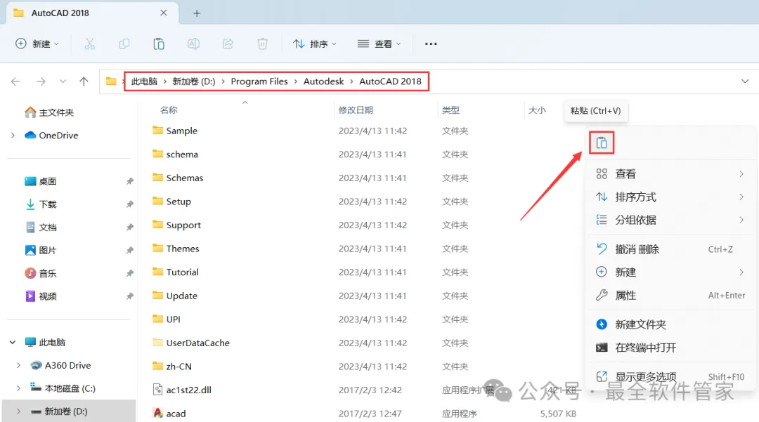 13、右键文件夹的空白处,点击【粘贴按钮】