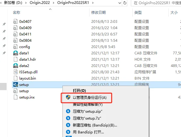 第四步:找到【setup】安装程序,右击以管理员身份运行。