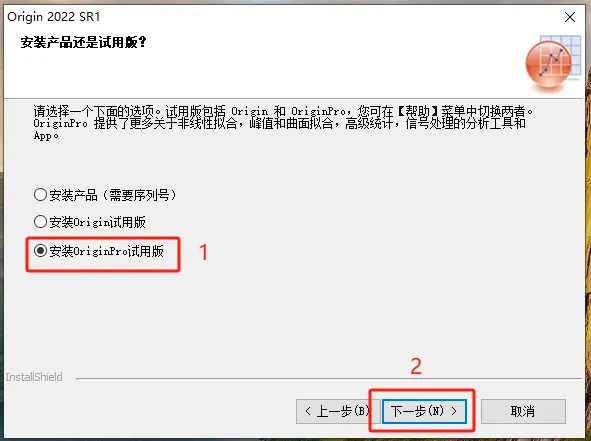 第七步:选择【安装originpre试用版】,然后点【下一步】。