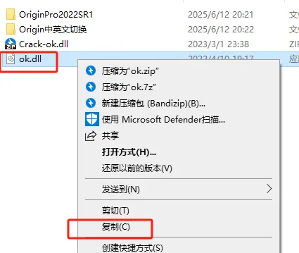 第二十步:复制解压出来的【ok】文件。(此文件解压时一定要留意电脑杀毒软件报错,有可能会误删, 如有发生,将文件恢复并添加到白名单即可。)