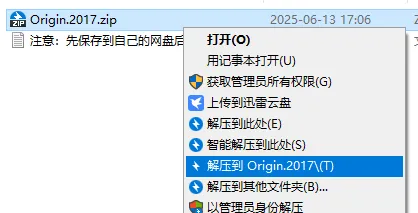 第二十步:返回第二步解压的文件夹,找到【Origin2017Crack】压缩文件,右击解压到此处。