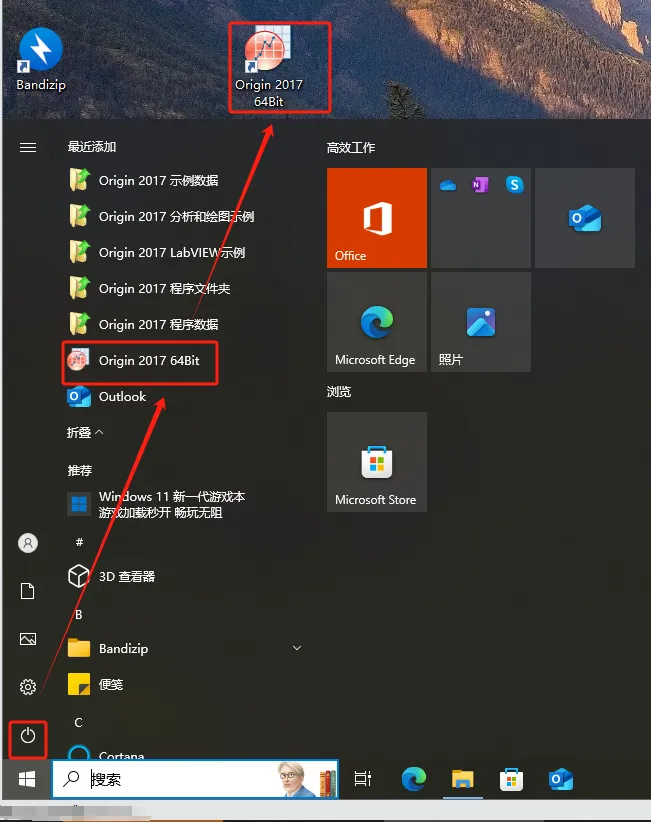 第二十三步:点开电脑【开始】,找到刚安装的【origin 2017 64bit】程序,将其拖到桌面。