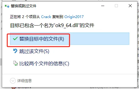 第二十六步:选择【替换目标中的文件】。