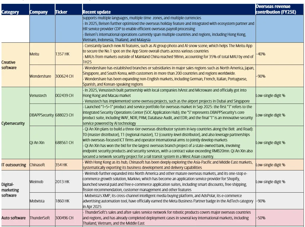 报告推荐投资者重点关注那些在AI技术应用、国产替代以及海外市场拓展方面表现突出的软件企业。