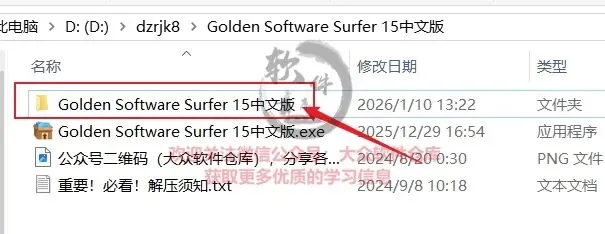 2.双击打开解压后的Golden Software Surfer 15中文版文件夹;