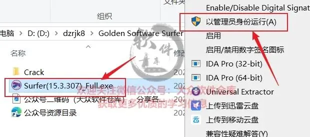 3.管理员身份运行Surfer(15.3.307) Full.exe安装程序;