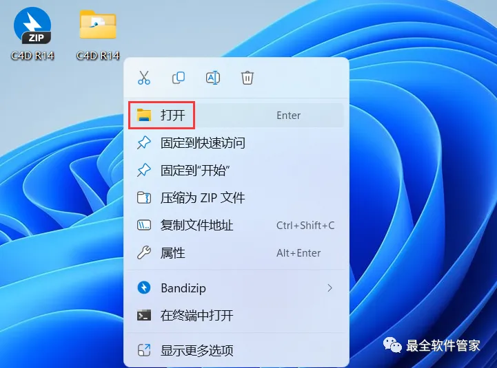 17、回到桌面,右键桌面上的【Cinema 4D R14软件图标】,点击【打开】