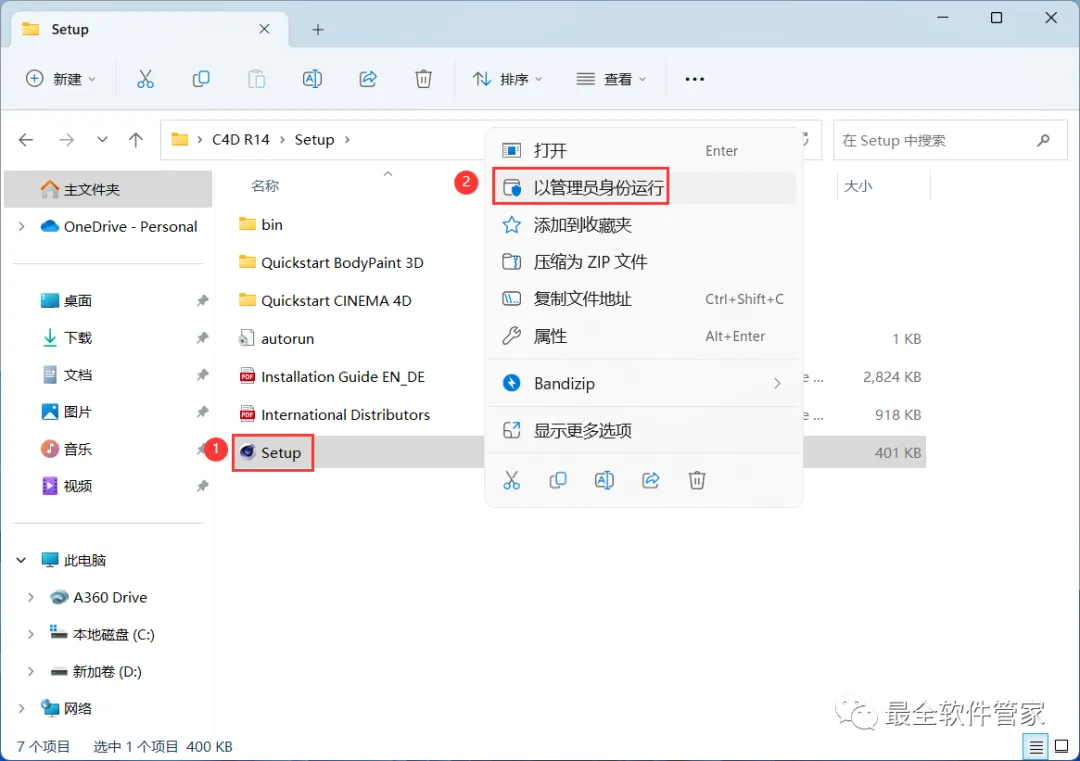 7、找到【Setup】应用程序,右键选择【以管理员身份运行】它