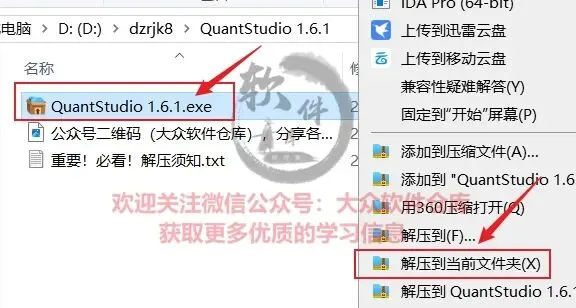 1.把资源从网盘下载到电脑上面,右键QuantStudio 1.6.1.exe压缩包选择解压到当前文件夹;