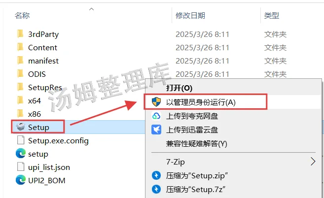 4.先选择【Setup】程序,然后右键点击【以管理员身份运行】。