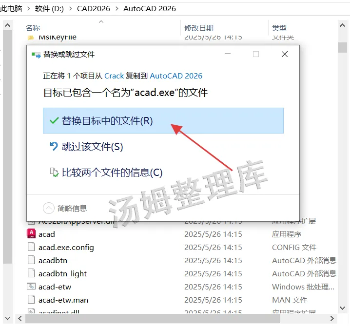 5.弹窗点击【替换目标中的文件】。
