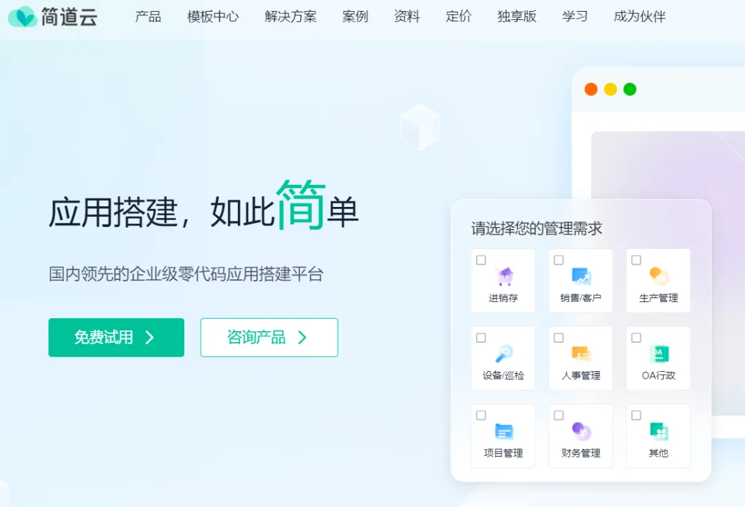 这个虽非传统“桌面软件”,但威力巨大: 简道云 让你不用写代码,就能搭建客户管理、设备巡检、报销流程等系统。