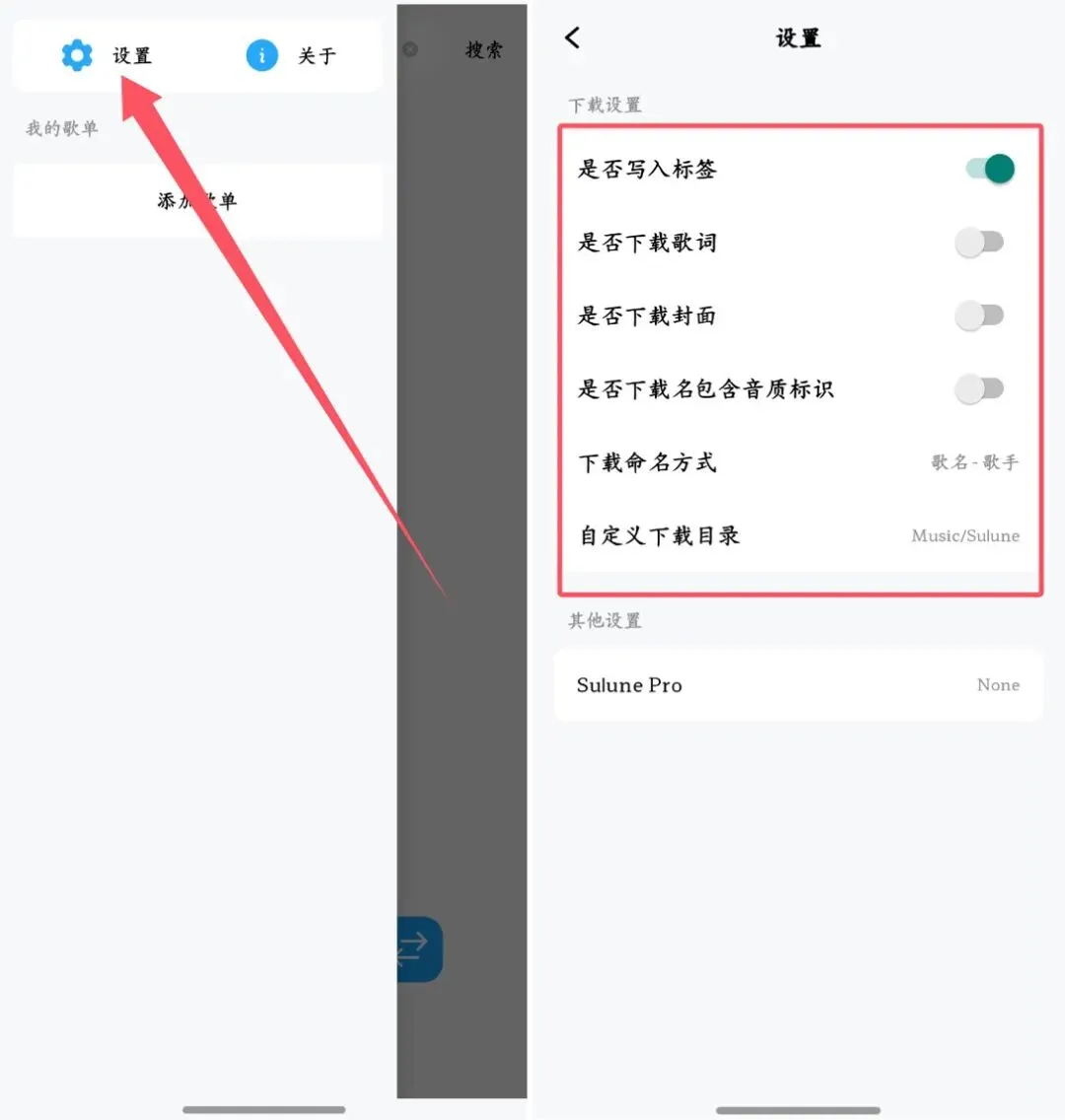 在歌曲下载之前,你可以提前设置是否写入标签、是否下载歌词和封面、自定义歌曲的保存目录等。