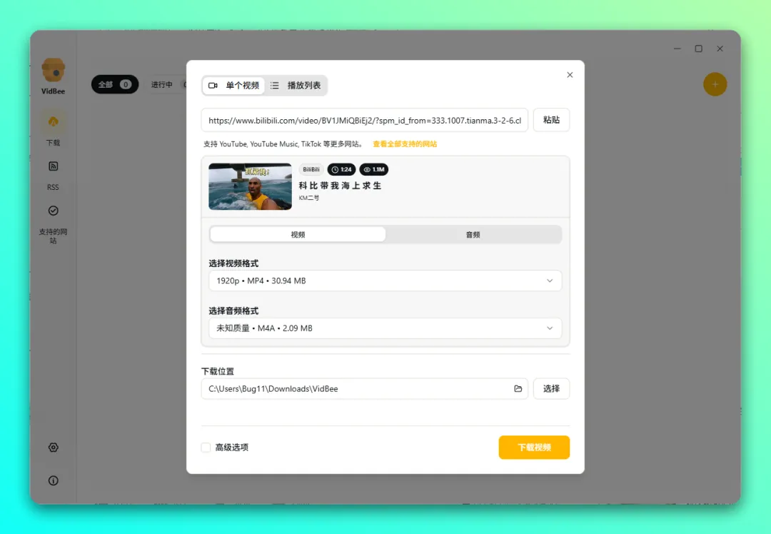 WIN软件VidBee - 支持主流平台视频下载工具