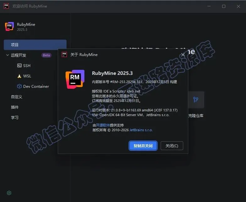 公众号关键词回复:RubyMine