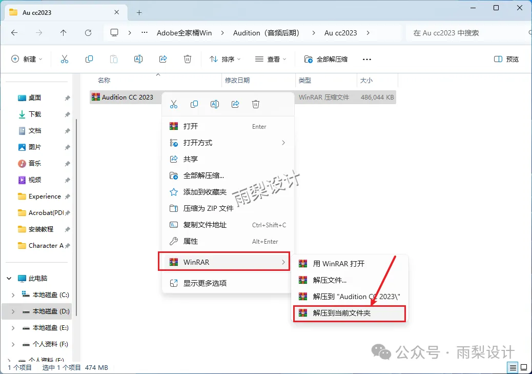 1.右键【下载的安装包】选择【解压当前文件夹】