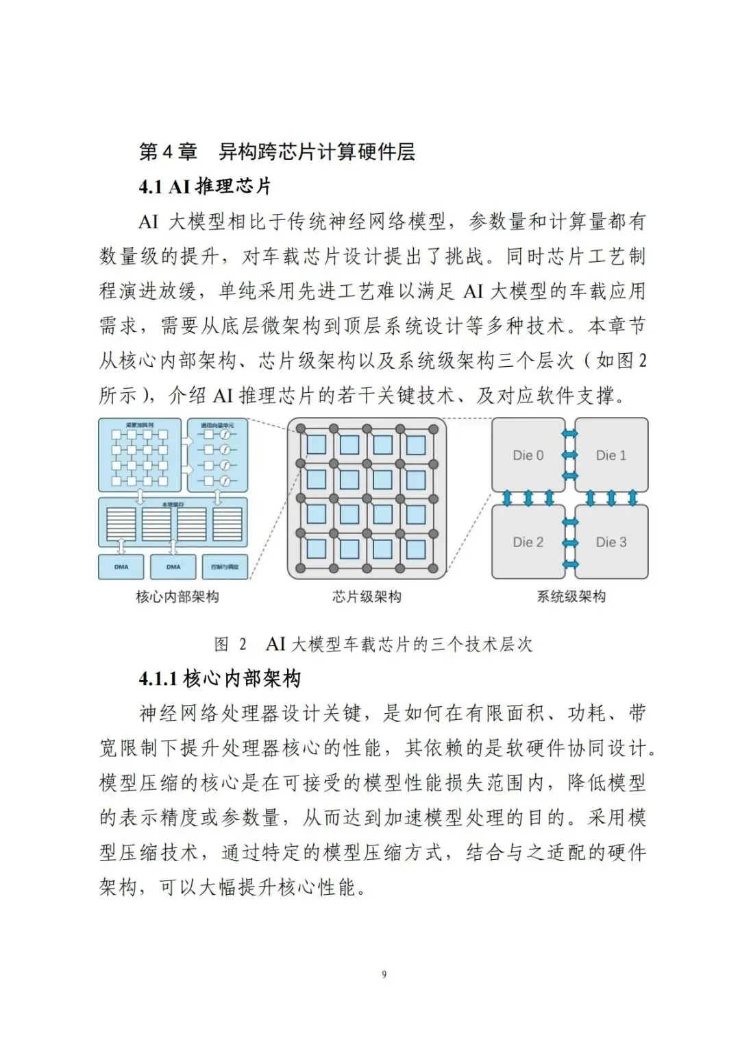 白皮书从核心内部架构、芯片级架构、系统级架构三个层次深入分析了AI推理芯片的关键技术:
