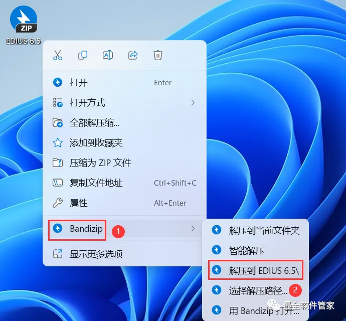 1、下载EDIUS 6.5软件安装包到电脑上,右键选择【解压到EDIUS 6.5\】