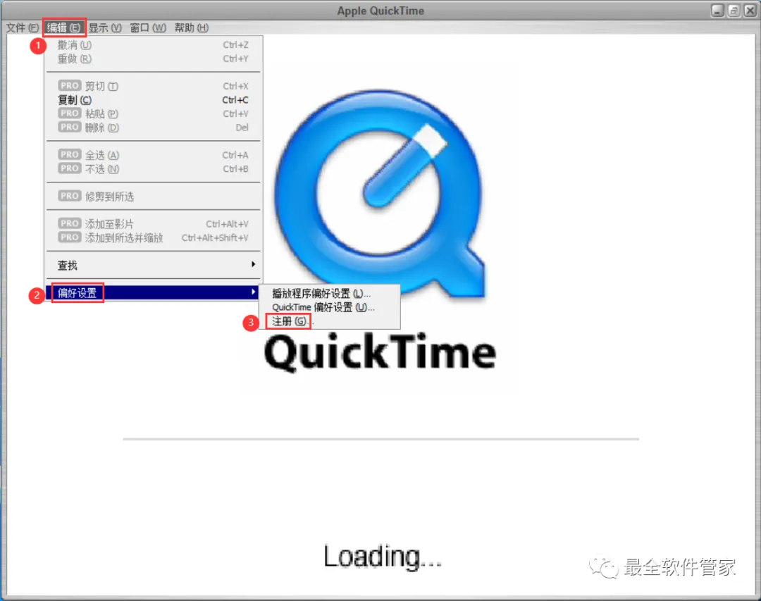 11、点击【编辑】、【偏好设置】,再点击【注册】