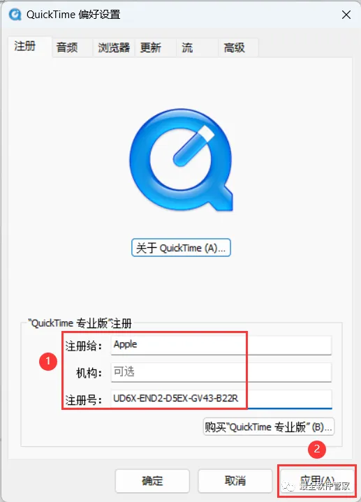 12、注册号一栏输入:UD6X-END2-D5EX-GV43-B22R,再点击【应用】