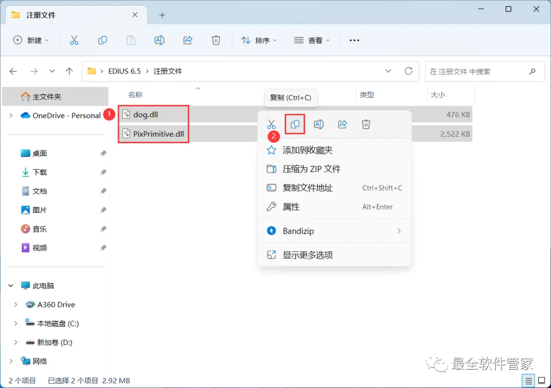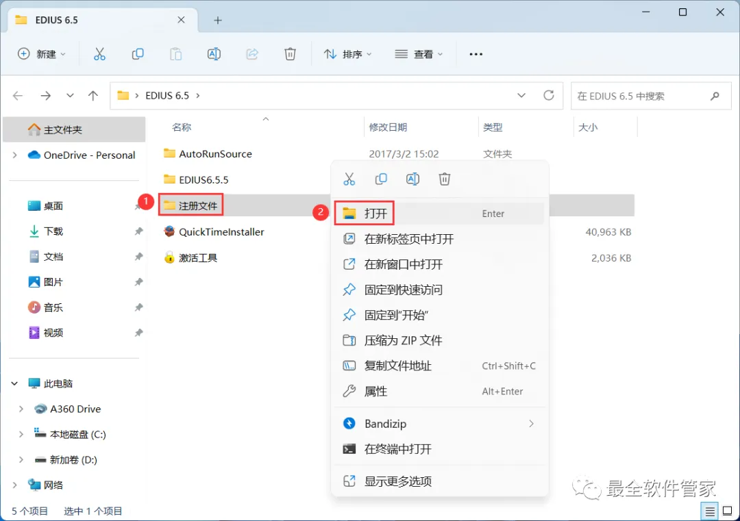 26、回到EDIUS 6.5文件夹,找到【注册文件】文件夹,右键【打开】它