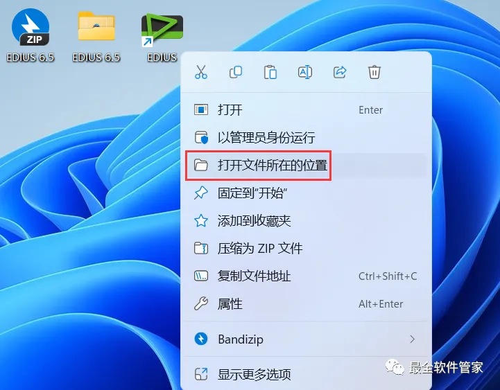28、回到桌面,右键桌面上的【EDIUS软件图标】,点击【打开文件所在的位置】