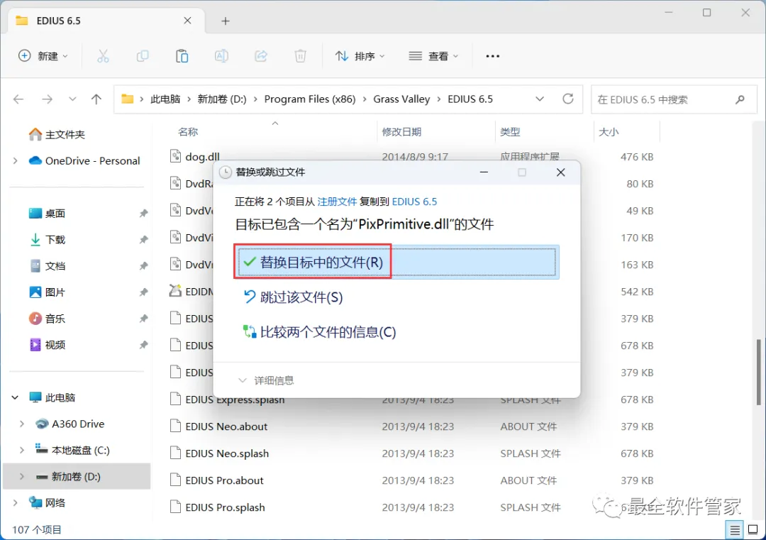 30、点击【替换目标中的文件】