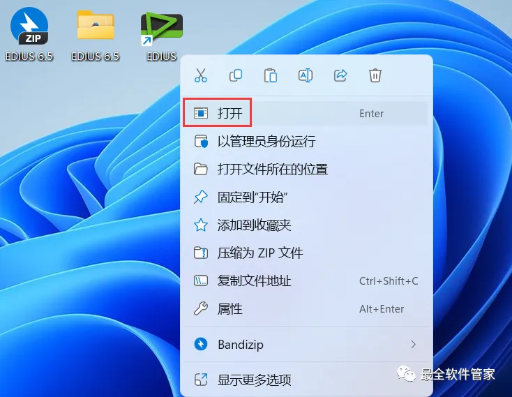 31、回到桌面,右键桌面上的【EDIUS软件图标】,点击【打开】