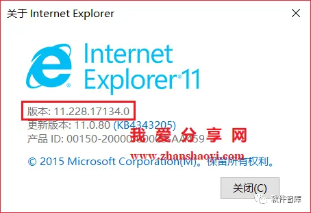 2.在弹出的窗口中即可看到Internet Explorer版本