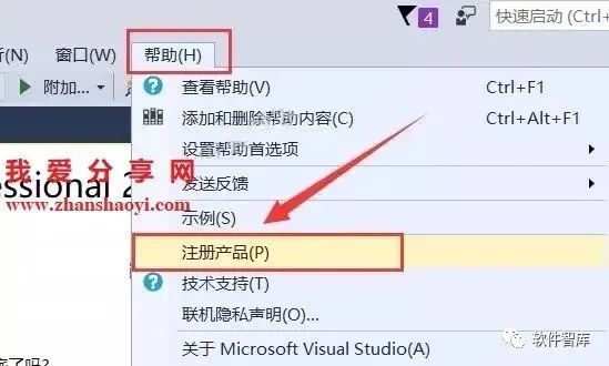 14.点击菜单栏中的【帮助】按钮,点击【注册产品】