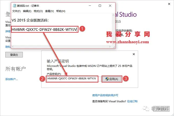18.将激活码全部选中,Ctrl+C复制,Ctrl+V粘贴至【产品密钥】处,然后点击【应用】