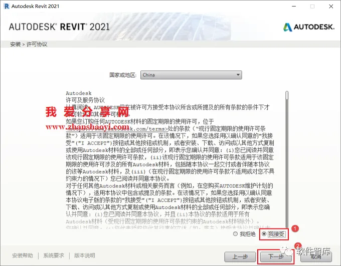 6.许可协议,先勾选“我接受”,然后点击【下一步】