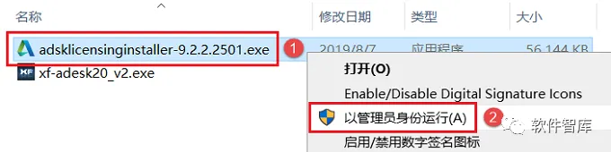 12.然后找到adsklicensinginstaller-9.2.2.2501.exe,鼠标右击选择【以管理员身份运行】