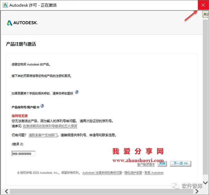 20.提示序列号无效,不用管它,点击右上角【×】关闭窗口