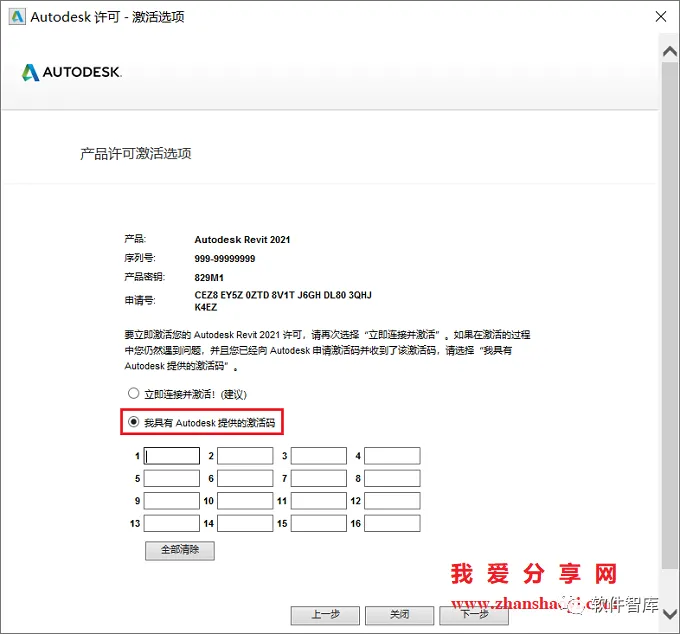 23.先勾选“我具有Autodesk提供的激活码”,不要着急点击“下一步”,下面我们通过注册机来生成激活码