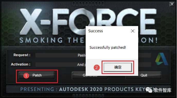 25.弹出注册机界面,点击【Patch】,弹出“Successfully patched”提示框,点击【确定】
