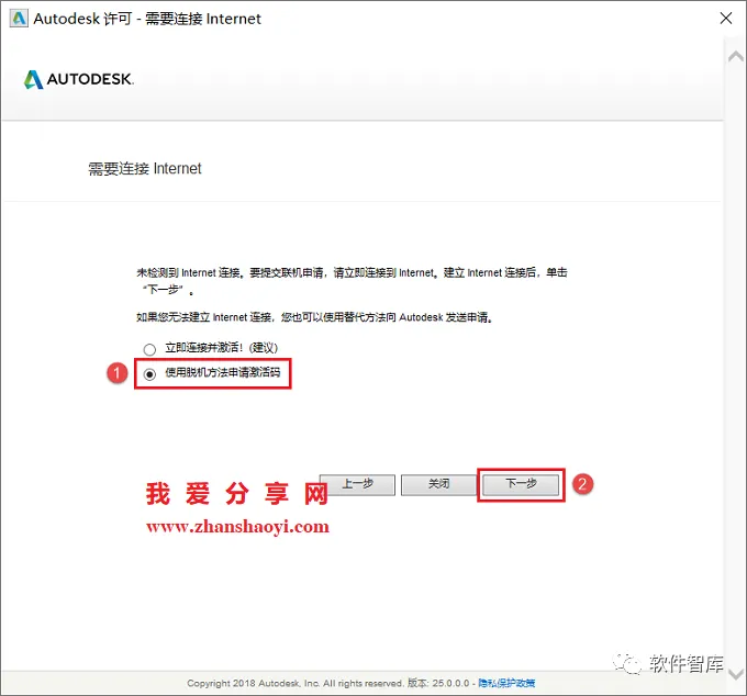 15.先勾选“使用脱机的方法申请激活码”,然后点击【下一步】