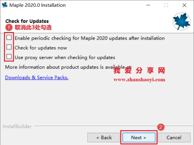 9.检查更新界面,先取消“Enable periodic checking…”和“Check for updates…”前面的勾选,然后点击【Next】