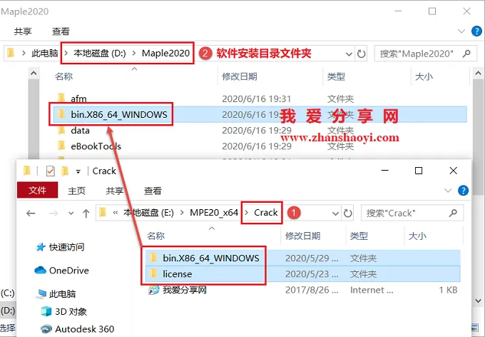 14.将license和bin.X86_64_WINDOWS文件夹全部复制粘贴到软件安装目录(见第4步)中替换原文件