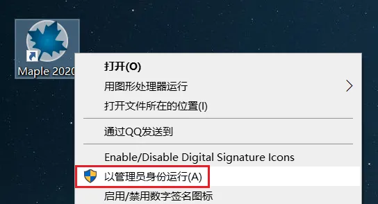 16.返回桌面,找到Maple 2020图标,鼠标右击选择【以管理员身份运行】
