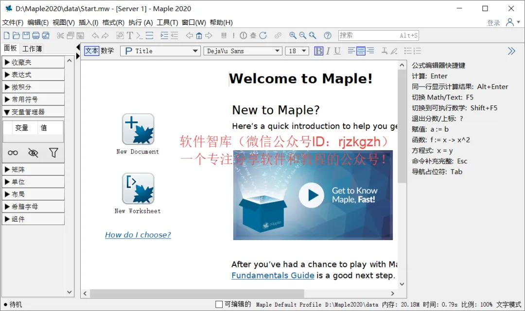 20.打开Maple2020软件,中文版界面如下: