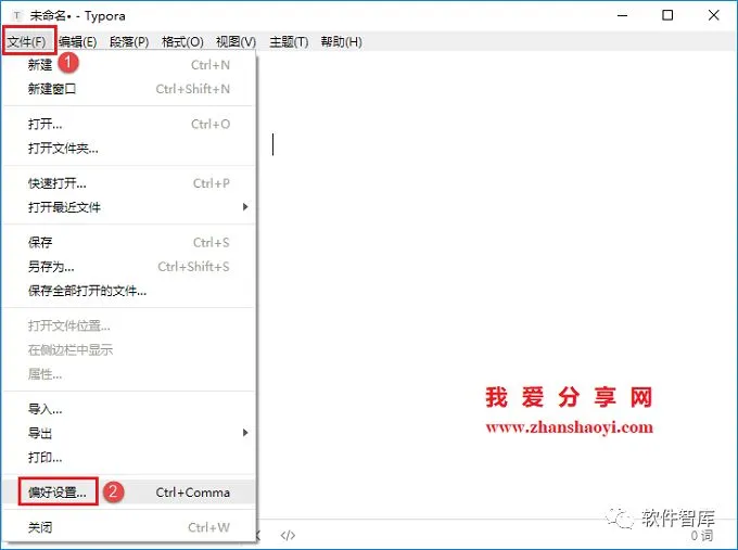 8.打开Typora软件,点击【文件】→【偏好设置】