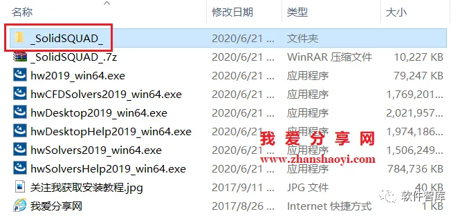 13.下面开始破解,返回初始软件安装包,双击打开_SolidSQUAD_文件夹,